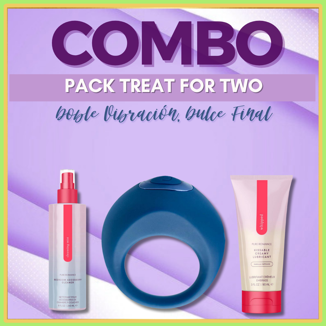 Our next course is something you can both enjoy: a gift for two. This flexible C-shaped ring stretches to fit many sizes and provides powerful vibrating pleasure for both you and your partner. Simply apply a creamy lubricant and glide it over your penis (or toy), then place the ring against your clitoris for an unforgettable ending . This is a sweet gift you'll never regret.