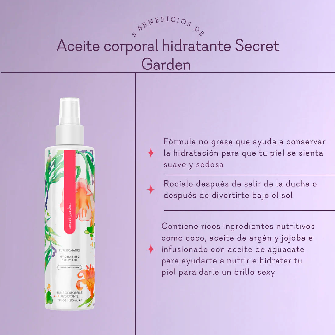 •Este sedoso aceite corporal le aporta a la piel una dosis de hidratación cuando lo necesites