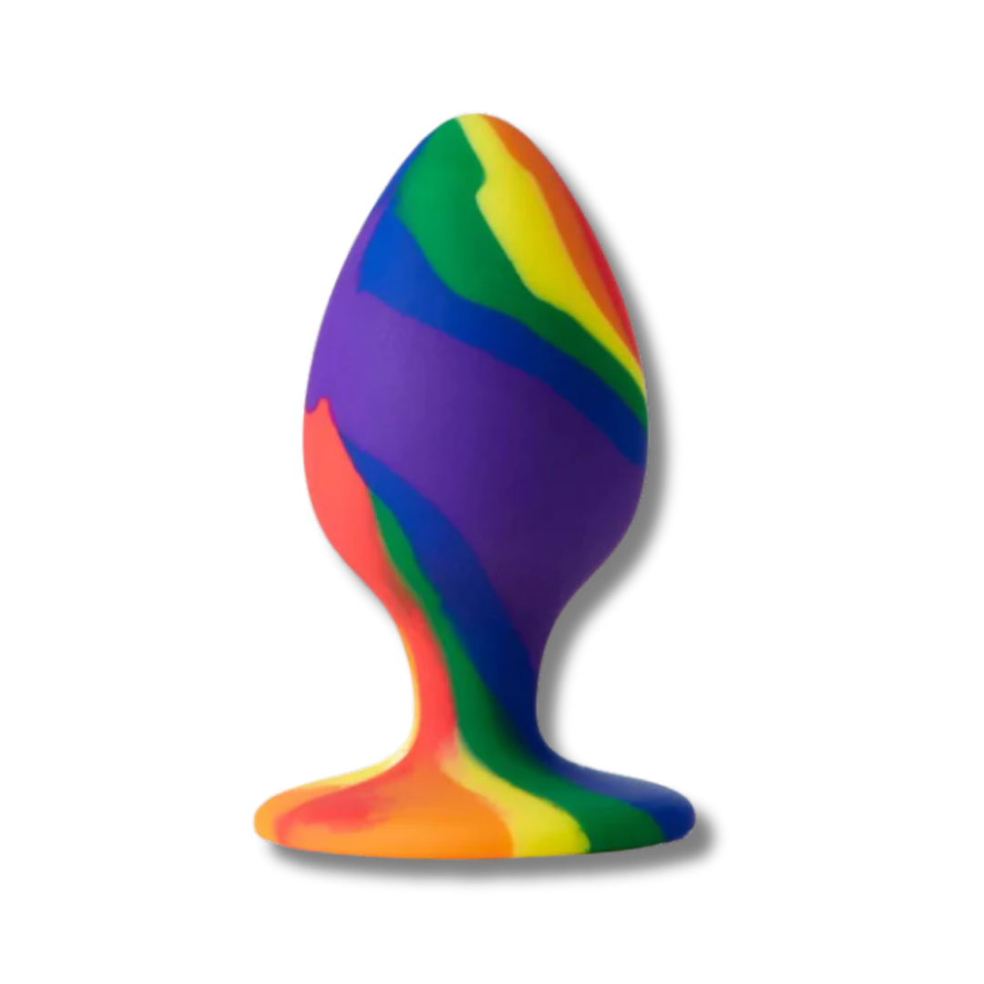 ¿Qué tal un placer verdaderamente único? Cada uno de nuestros enchufes Over The Rainbow presenta un diseño multicolor que es único en su tipo, como usted. La forma cónica grande está hecha de silicona suave y flexible, por lo que es cómoda de insertar y fácil de usar. La base con novia permite una fácil extracción y funciona como una ventosa para jugar con las manos libres. Over The Rainbow juega mejor con Booty Eaze Comfort Gel y el lubricante a base de silicona Pure Pleasure para preparar para la diversión y maximizar la sensación.